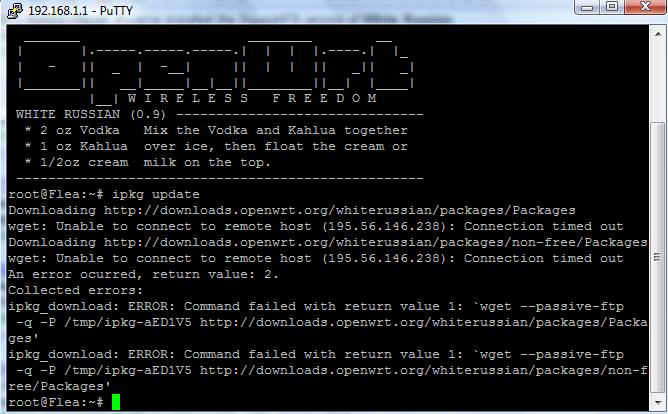 ipkg_download: ERROR: Command failed with return value 1: `wget --passive-ftp -q -P /tmp/ipkg-6gZLVZ ftp://ftp.berlios.de/pub/xwrt/packages/base-files-uci'